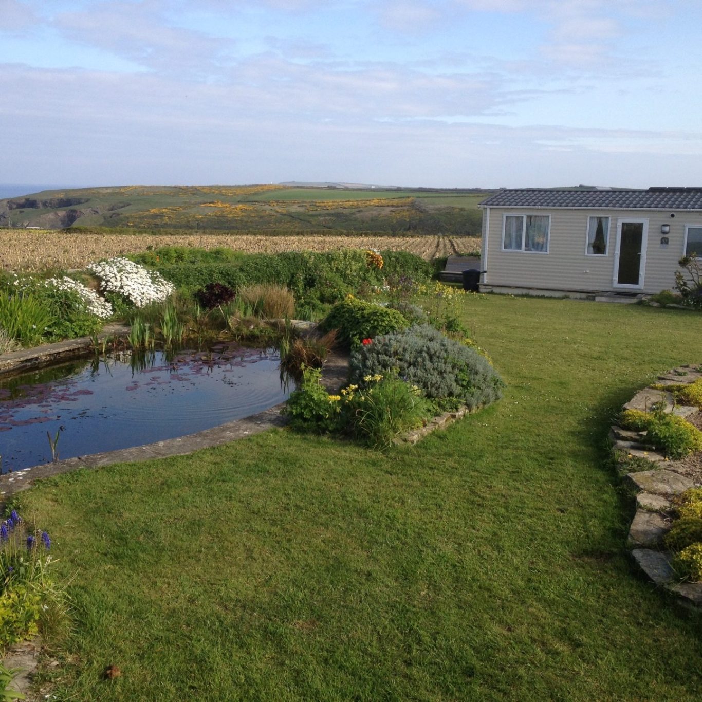 Guests staying in Porthcothan Caravan are welcome to enjoy our large garden at Golden Burn Cottage which is a haven for wildlife and flowers. The ponds attract newts, frogs, grass snakes and a variety of birds and dragonflies. Common lizards, slow worms, shrews and voles live  in the banks that surround the garden. The fields  between the caravan and the sea are generally planted with cereal crops in the summer and brasicas in the winter. Barn owls, kestrels, peregrines and buzzards, corn bunting, skylark  deer and fox  are regularly seen throughout the year whilst winter provides sightings of hen harrier, merlin and short eared owl.